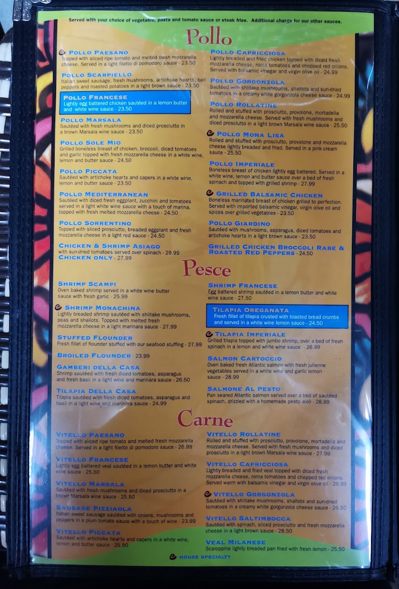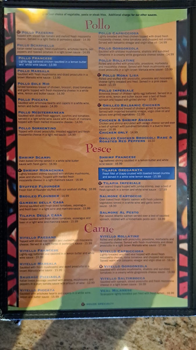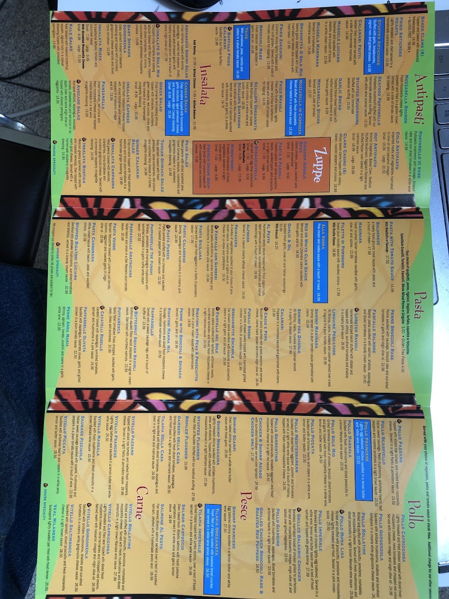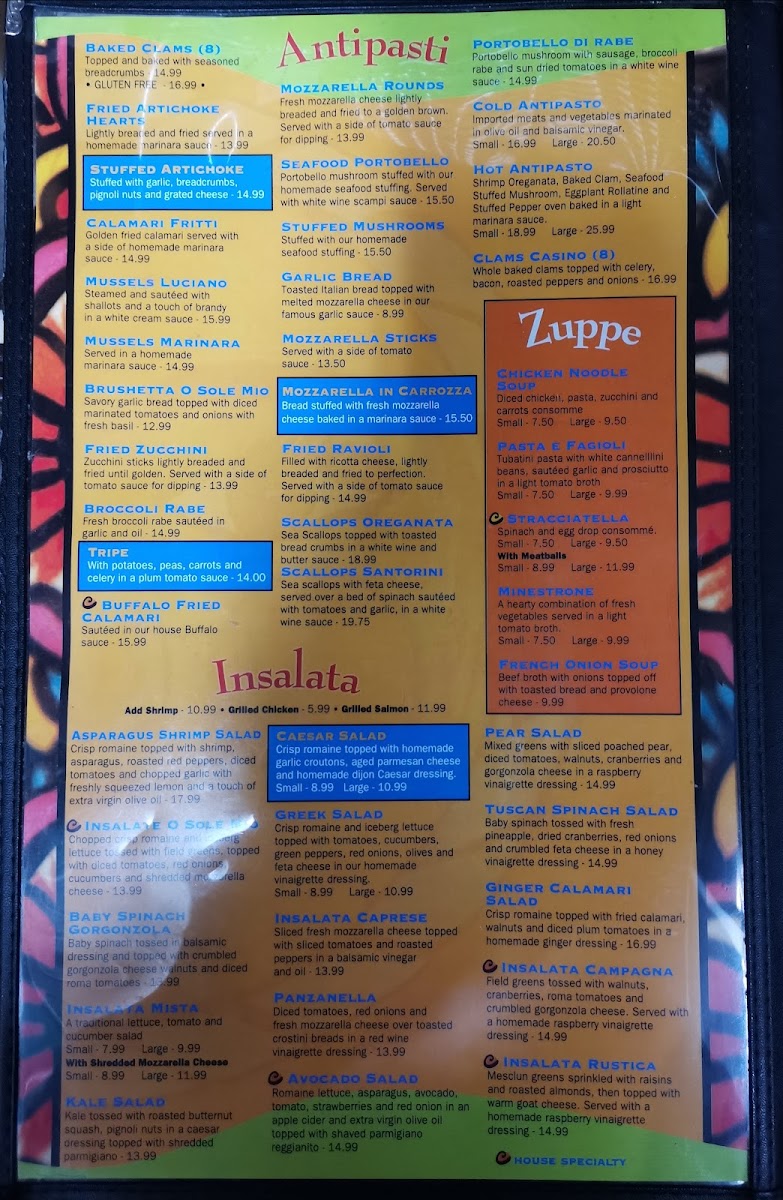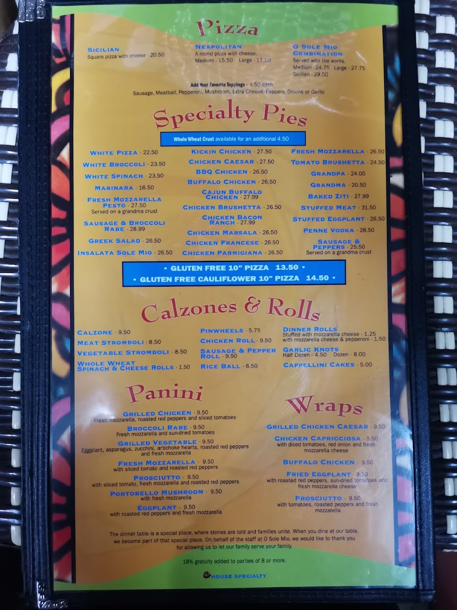 O Sole Mio NY Menu