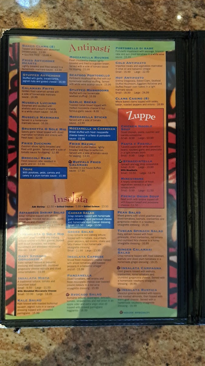 Beverage options include Sangria, complementing the Italian dining experience.