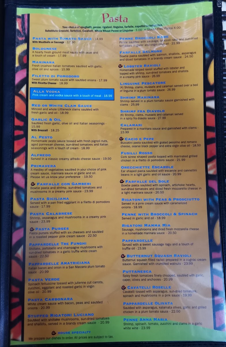 The menu at O Sole Mio NY features a broad selection of classic Italian dishes centered around pizza, pasta, and combination entrees. Visitors can expect a variety of specialty pizzas including options like White Pizza, BBQ Chicken, Buffalo Chicken, and Chicken Caesar Pie, as well as traditional slices such as the Grandma Slice and Cheese Pizza Slice.